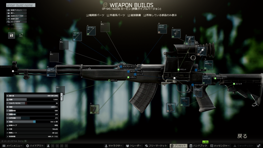 今日の20時に入ったパッチでSKSの反動がでかくなってしまったので、wikiに記載しているカスタマイズだと納品できないかもですね。至急パーツリスト更新しますのでお待ちください