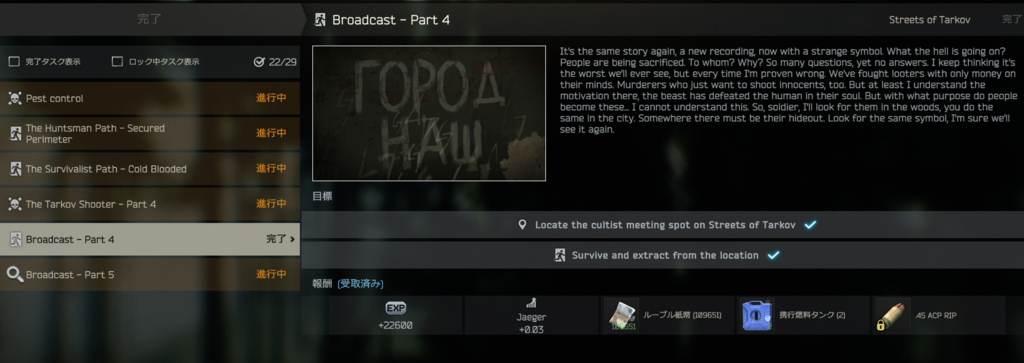 PVE 部屋に入ってピポってサブタスク完了音を聞いたあと、そのレイド中に死亡→別レイドでSoT生還しましたがタスク完了せず。タスク画面も0パーのまま。残一回のカギを数百万で買ったのにやっちゃったな~