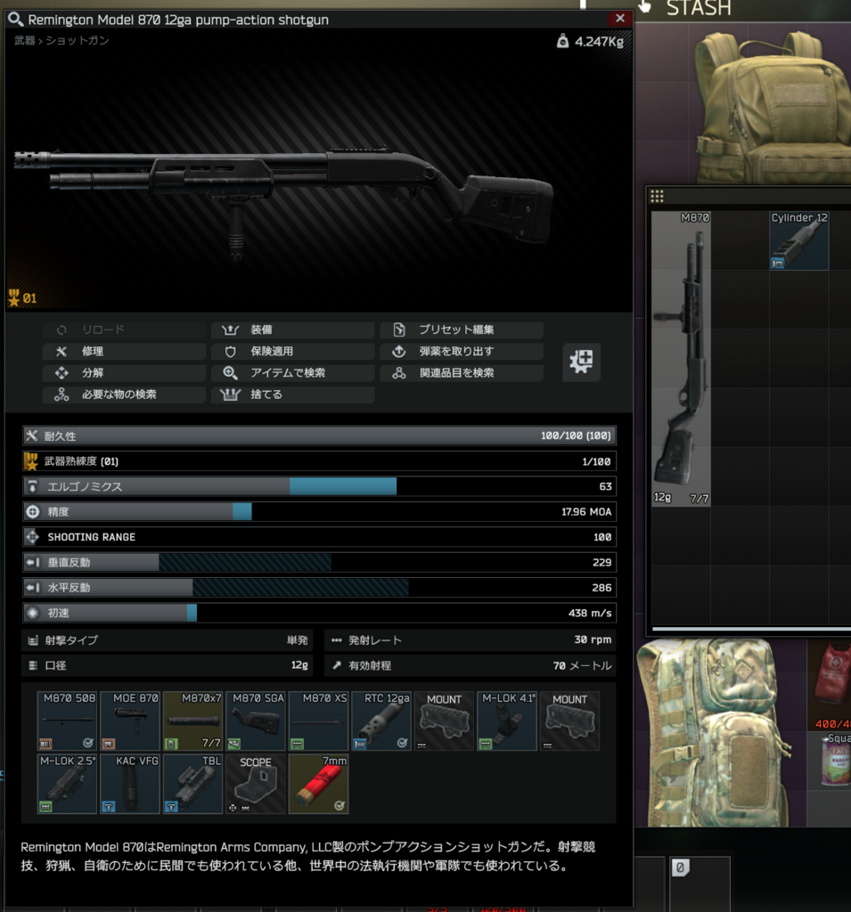 (M870 12ga 508mm barrel)は店売りのSGにデフォルトでついていますが、フリマで売られてるものがバレル変更されている可能性があるからです。