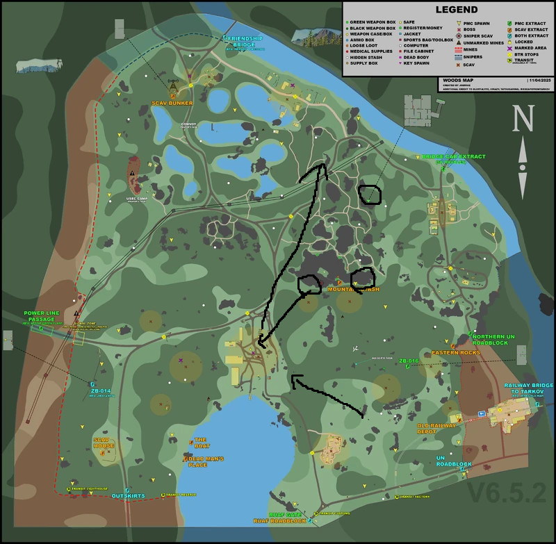 速攻で新バンカーで物資漁った後、バンカー西に向かって歩いていけば大体PMC2~4人に会えた。北の村から南下してるのにブチ当たるみたいで一番楽にキル出来たよ。木で見辛いこともあるからグレネードがあると便利。
