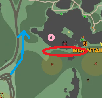 先人様たちのように開幕SJ6使って山湧き狩りに行き、 その後はピンクの◯のところらへんで伐採所にPMCいたら待機。 青↑の移動するの願って筋トレやモシンカチャカチャしてました。 PTを位置バレせずにやれた場合はスカブの茶々入れがなければ同じルート通りましたね