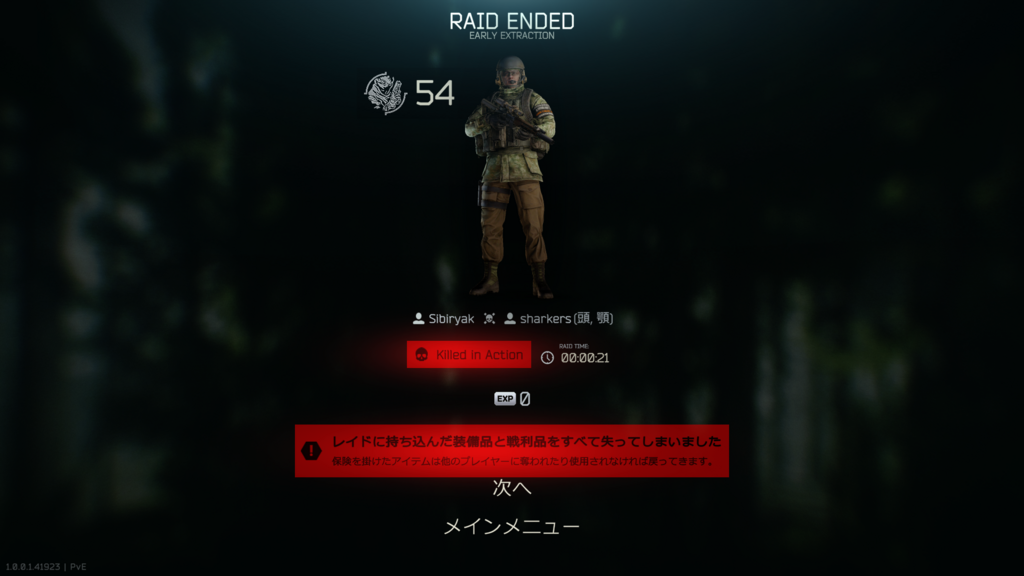 PVE 理由は不明ですが、一味がSCAV脱出のHole in the Wallの真北にある戦車が顔を出すための盛り土付近に居ました。開始から1分程度の時です。