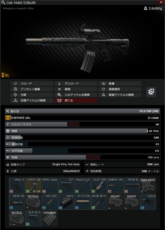 カスタム案ですが既に自分が英wiki最新のをプリセットで組んで画像更新しています。 パーツですがREAP-IRのスコープアイカップがエルゴ+6、jaegrLv.3の374₽なので必ず付けた方がいいです。そうすれば他でエルゴを底上げする必要もないので一つ一つ高いパーツを使う必要も無くなります。