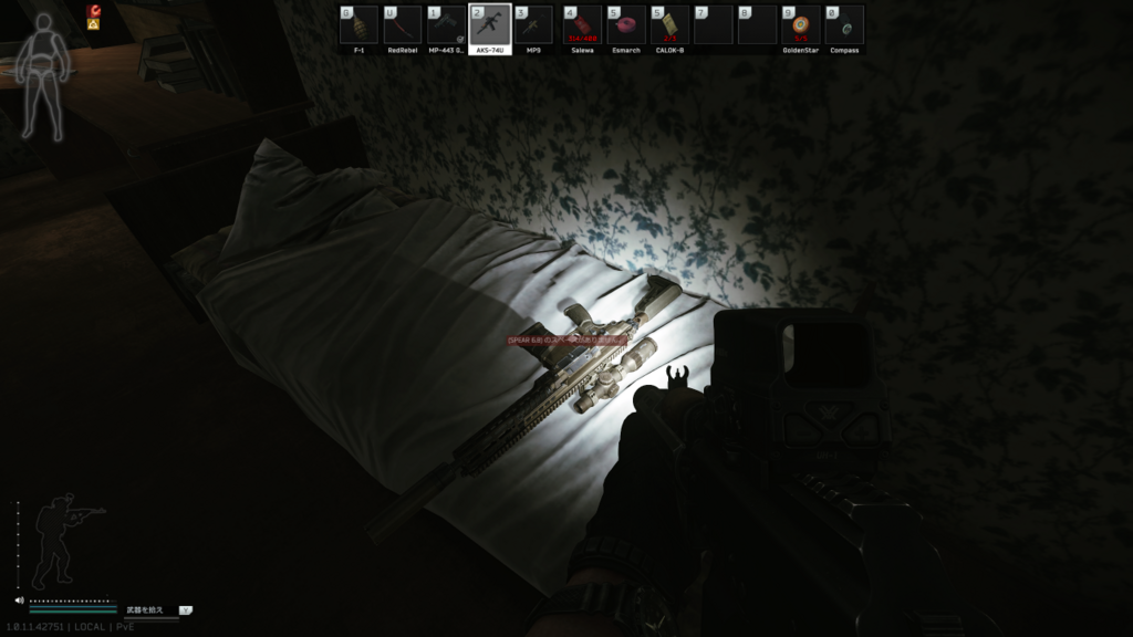 記載がないけれど、PvEでRSASSやらG28がベッドの上に落ちてました。 ちょっと今スクショが貼れないですが、また見つけたら貼っておきます。