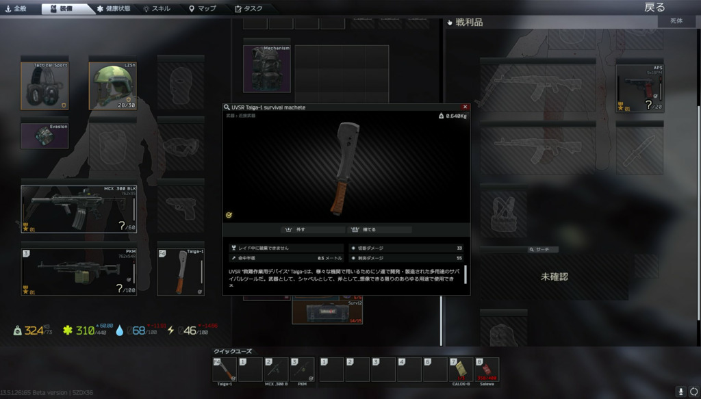 オフラインレイドにてkabanからUVSR Taiga-1ドロップ確認