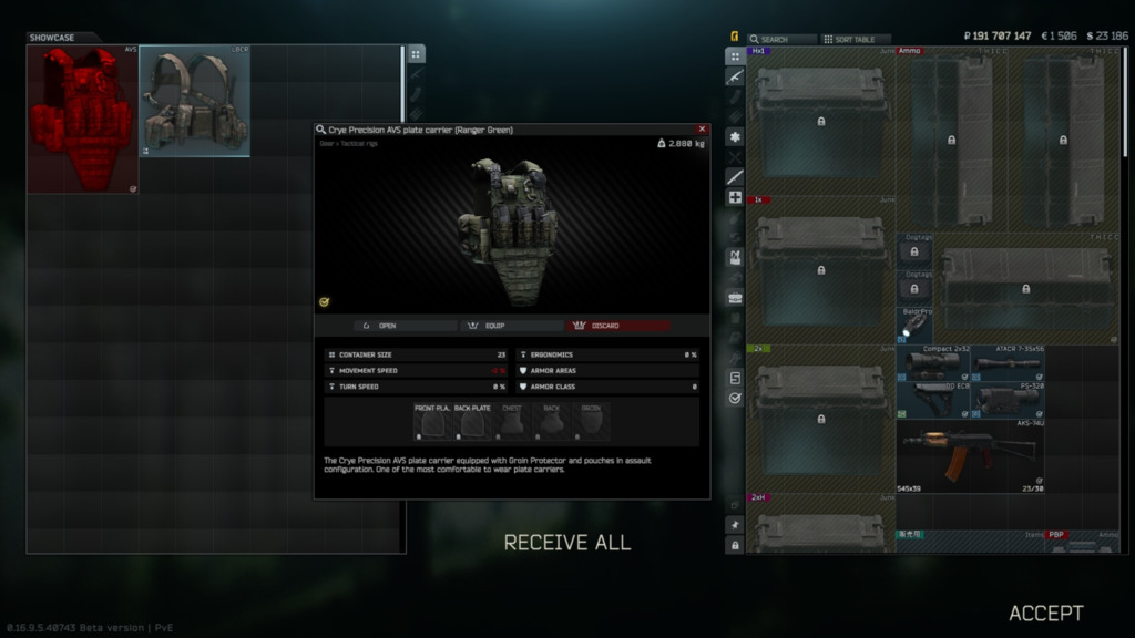 武器、防具(圧縮やプレート付)、階層化武器MOD、弾入マグを混ぜたら全て届かなくなる。