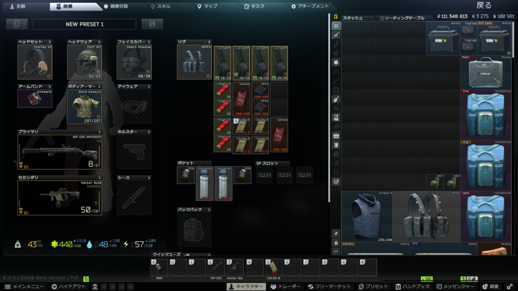 (PVP)SoTが重くて安定せず、2~3日かけてクリアしたから苦戦してる人への助言というか備忘録というか... 色々試したけど、ナイフorMP153とかにスラグ弾込めて出撃→タスク部屋近くの武器湧きで護身用武器調達→Sample拾って即transitを繰り返すのが一番楽だと思う。新カードキーは湧き位置覚えてある程度予備持っとく・SoTはスタミナ温存しつつゾンビ見えたらダッシュ(SJ6は刺した方がいい)・走ってくるゾンビだけ拾った武器で処理するぐらい?本当に湧きガチャ・他PMCの温情次第になるから試行回数重ねるしかないと思ってしまった。スペック高くてSoTでも余裕で撃ちあえるよ!って人も、運が良くないとロスト重ねる事になるから本当に最低限の装備でいいかもしれない。