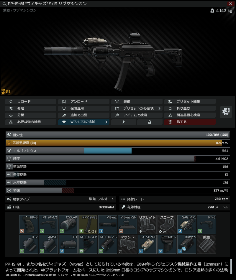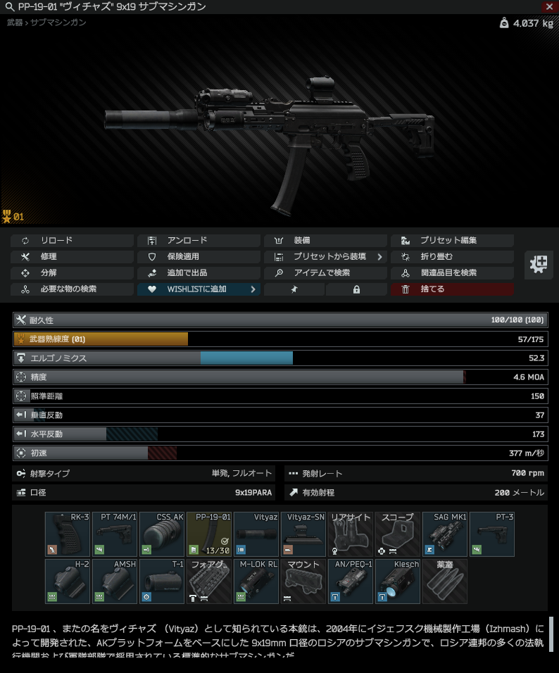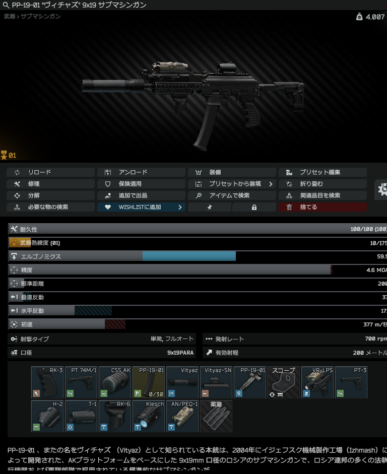 さらに PEQ-15、Klesch-2P のフラッシュライト、そして予想どおりサプレッサー(標準の Vityaz 用)も。