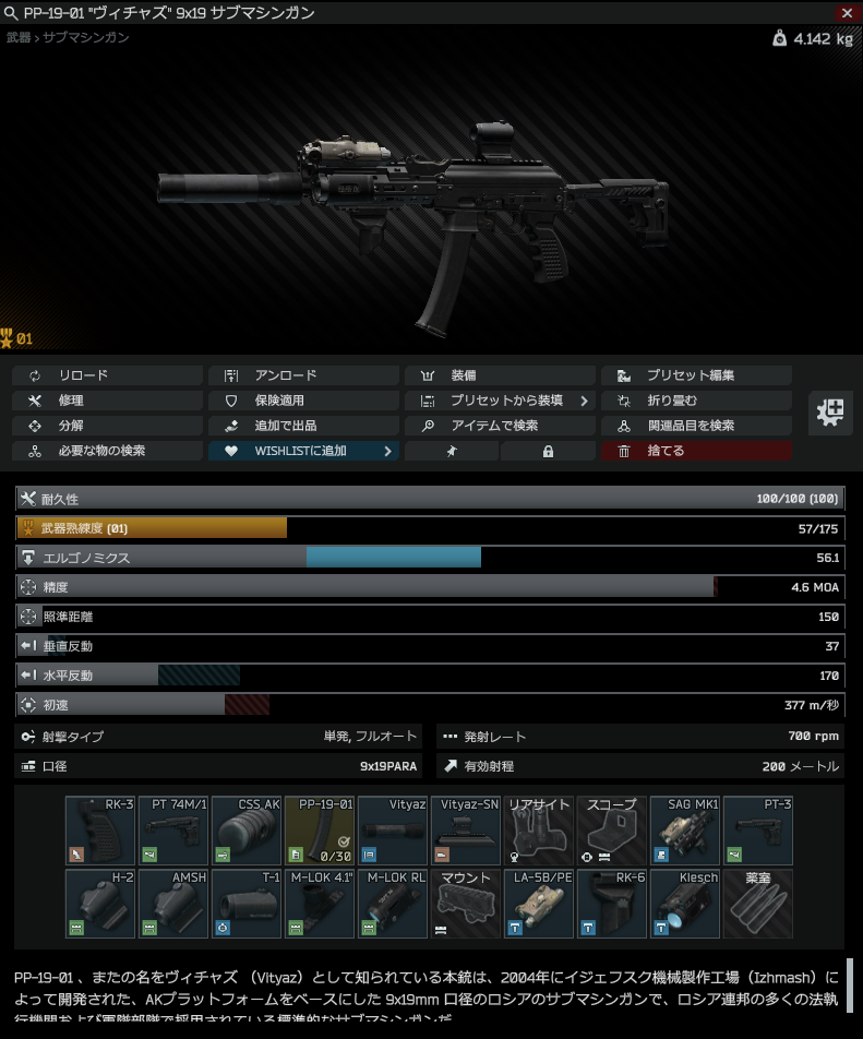 Vityaz は、スペーサー付きの Micro T-1 レッドドット、Zenit RK-6 のフロントグリップと RK-3 のピストルグリップ、PT-3 Klassika のストックが必要だ。