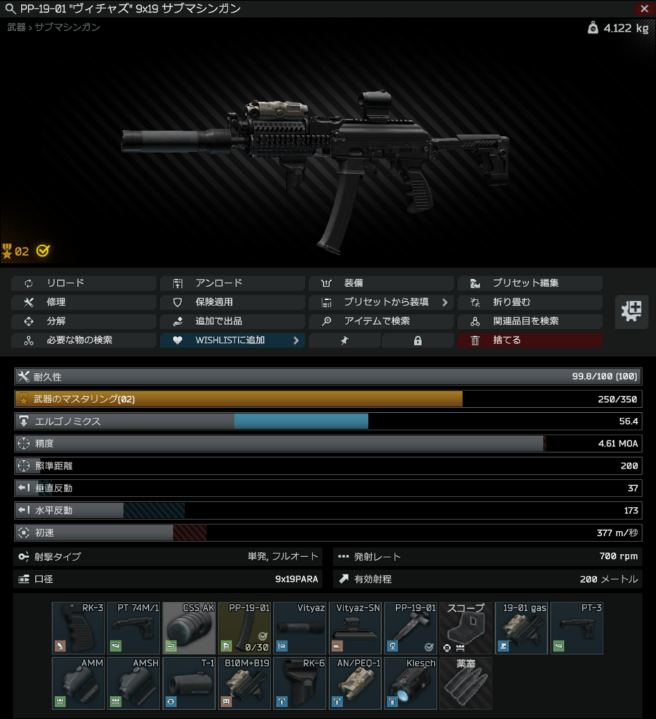 ヴィチャズに使用するピストルグリップ(AK Zenit RK-3 pistol grip)の入手が難しい場合は、RefのLL1にてGPコイン41枚で「PP-19-01 Zenit」が交換できるので、そちらを交換してカスタムすると安上がりになるかも