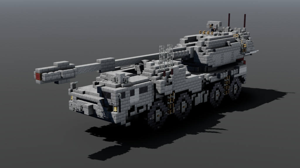 帝国軍が運用する装輪式の自走榴弾砲。長砲身の155mm榴弾砲と自衛用の12.7mm重機関銃を搭載している。