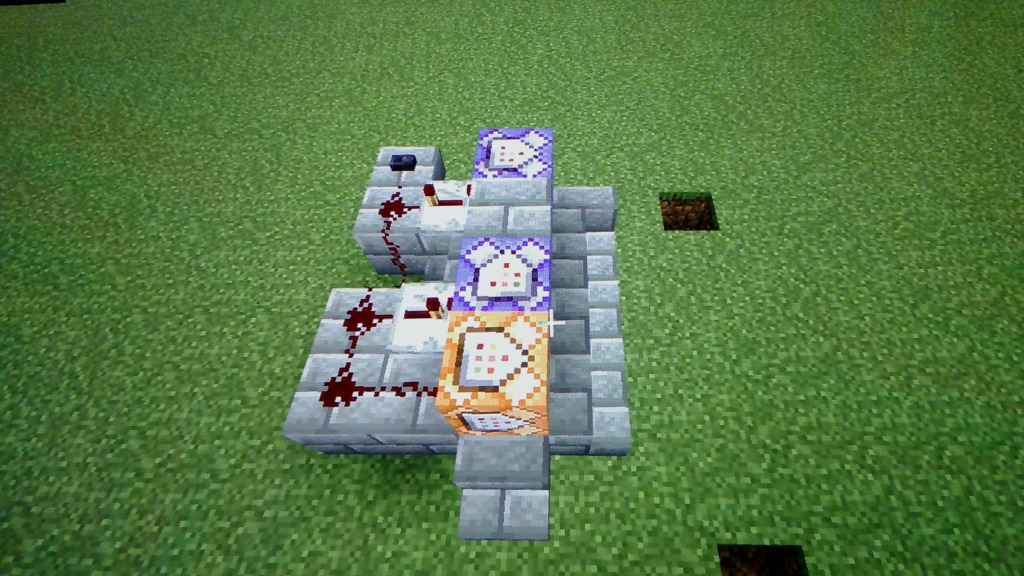 まず、画像のようにコマンドブロックとレッドストーンパウダー、反復装置をおいてください。