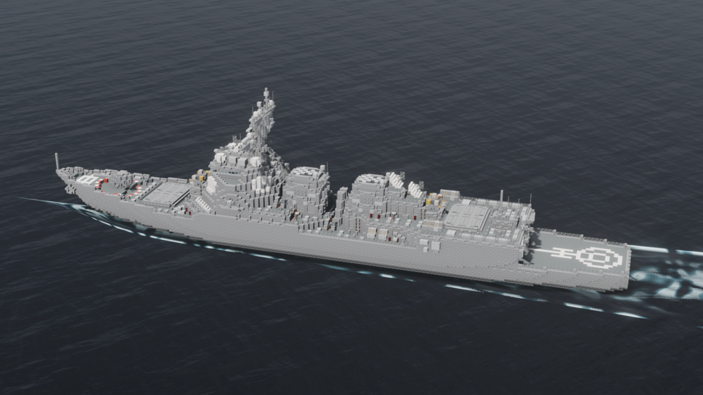 この艦は、ステルス性を重視して設計、建造された艦で、構造物、装備品は内蔵されているのでステルス性がとても高い艦です