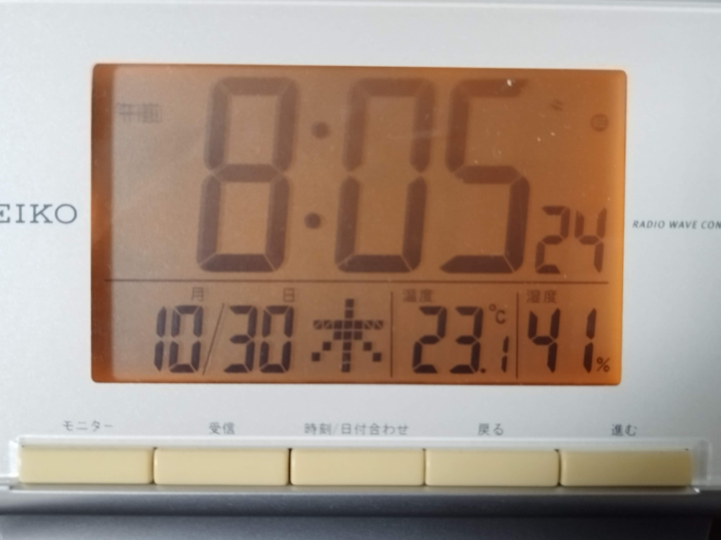 気温は昨日は木造家屋の方は15度までさがりリビングの方は19度まで下がってちょっと寒かったですね。 暖房器具を出すほどではなかったので毛布タイプのガウンを着てちょうどいいくらいでした。 今は26度まで上がっていて長袖の服でちょうどいいくらいです・