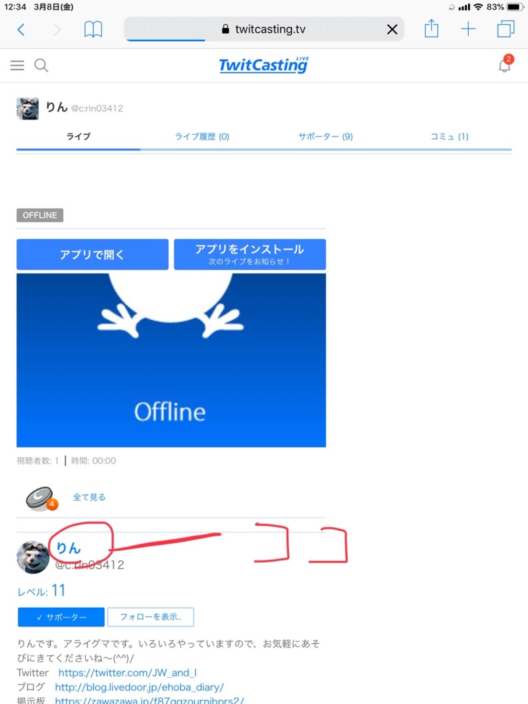 ③丸で囲った「りん @:rin03412」をタップしてください。