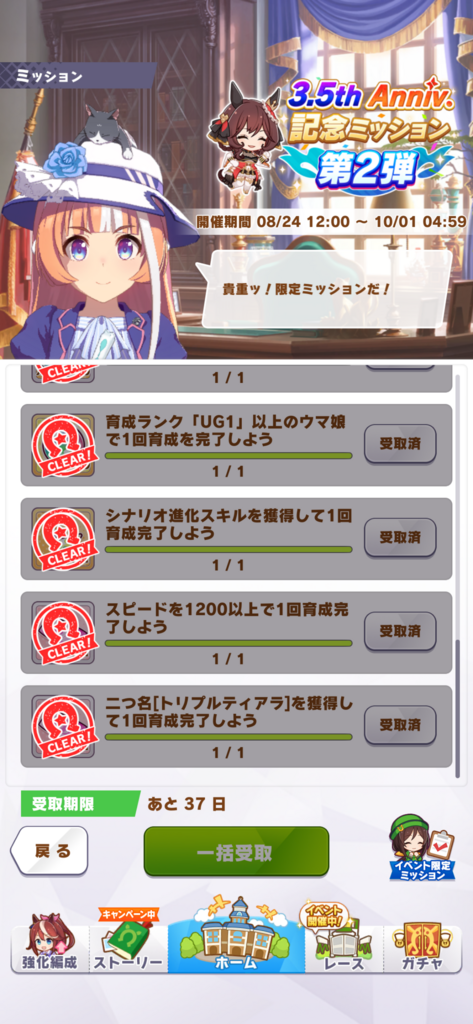 このミッション、グルーヴさんや ダスカ等でやれば、育成回数以外1回で終わる説。