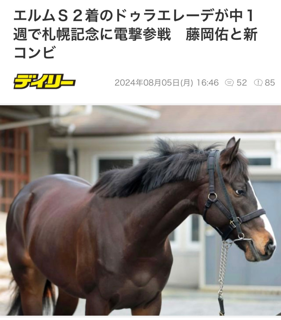 札幌記念に出る予定の シャフリヤールは乗り替わりに。