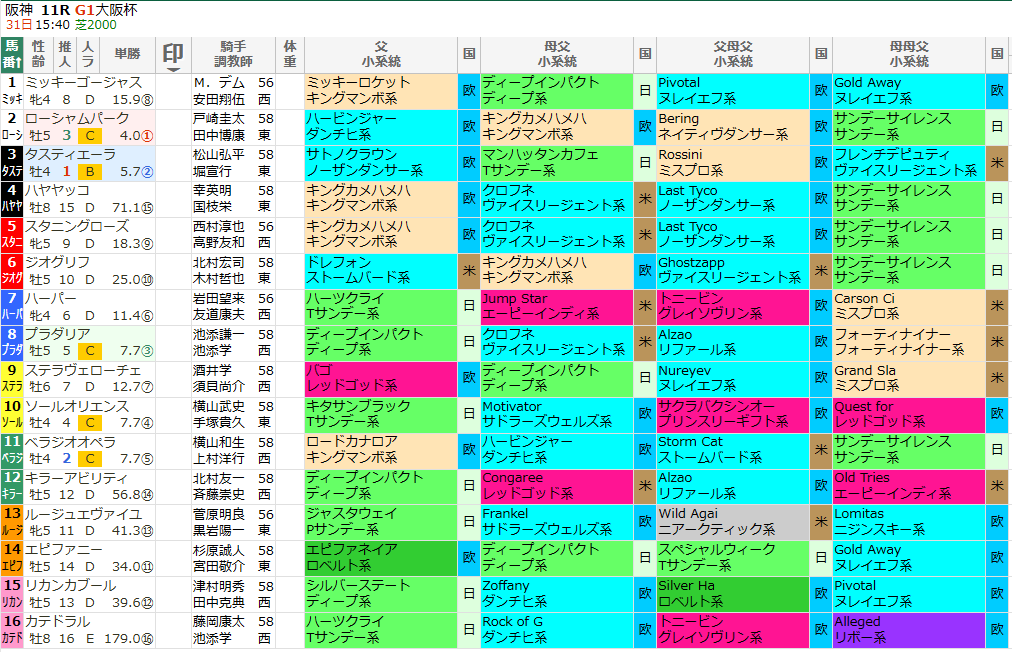 ディープ×ヴァイスリージェント系の大阪杯成績