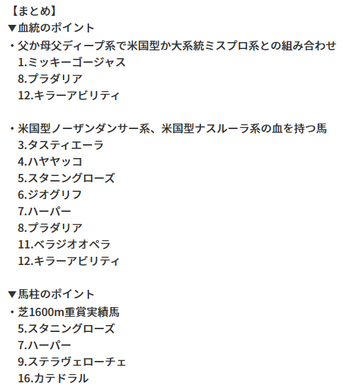 あと、これは自分の偏見かもだけど、①小倉からの転戦にはいいイメージがないです。該当が3頭…②ロードデルレイが消えたとなると、荒れるかも…。