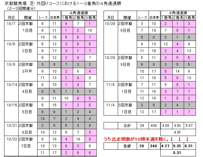 缶ビ 「外回りコースでの1~3着馬の4角通過順を拾ってみた。