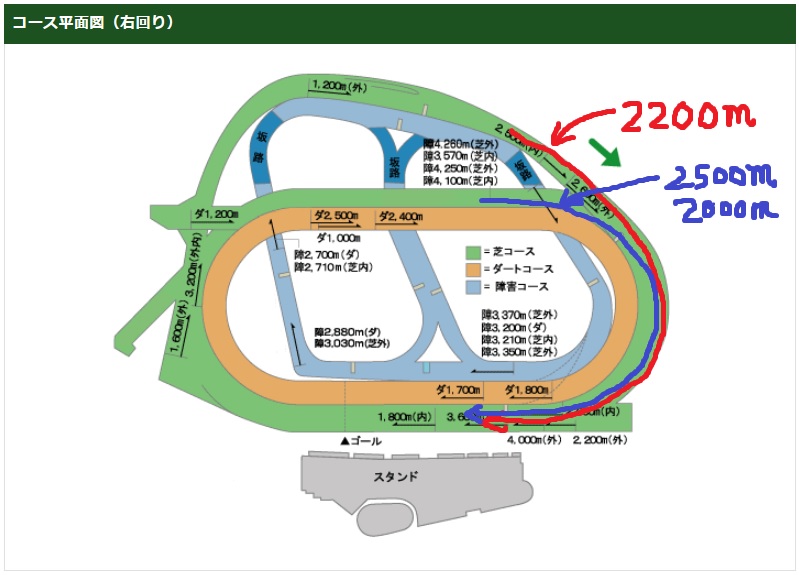 缶ビ 「あれは2200m。外回りコースだ。2000mや2500mの内回りに比べてややコーナーが緩い。
