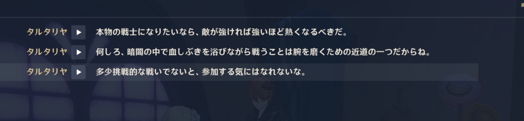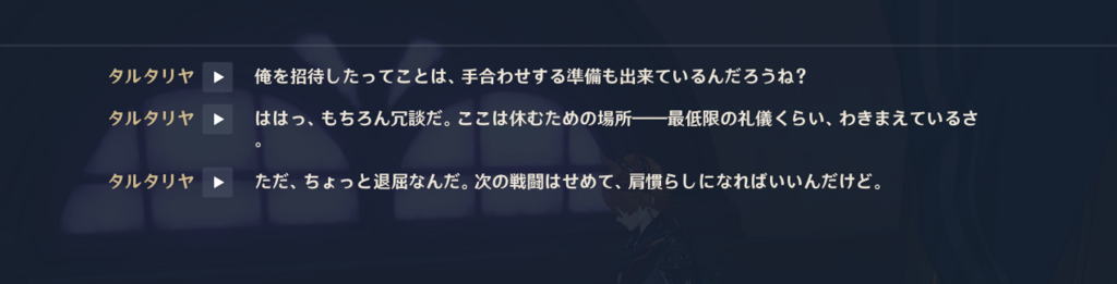 タルタリヤのシアター控室ボイスのテキストです ① ② ③。既出だったらすみません。