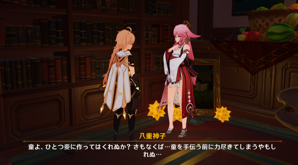 知恵と美貌を兼ね備えた八重神子様① ② ③ 手に負えない敵は任せてほしいアルレッキーノ① ② ③ 厄介な敵は任せてほしいディルック① ② ③