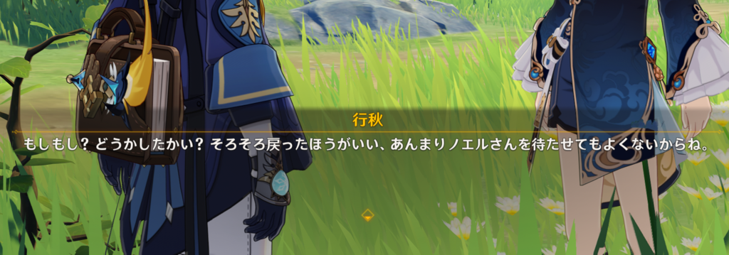 電話がないから「もしもし」がおかしいって理論は成り立つかな…?それを言ったらテイワットで使われてる現代的な多くの言葉がおかしいって話になるけど。そもそもあの場面での「もしもし」に違和感は感じなかったなぁ。