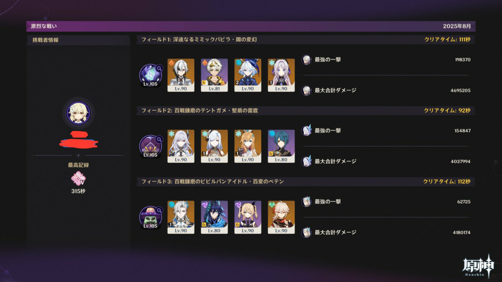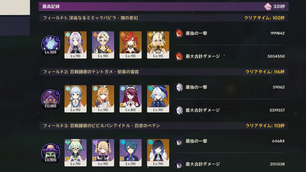 ベネット夜蘭フリーナモナ…その他チャージが必要な旧キャラ総動員だけど全く問題ない。逆にアルティメットまでやってるのにチャージ遺物もそろってないのは変だと思う。