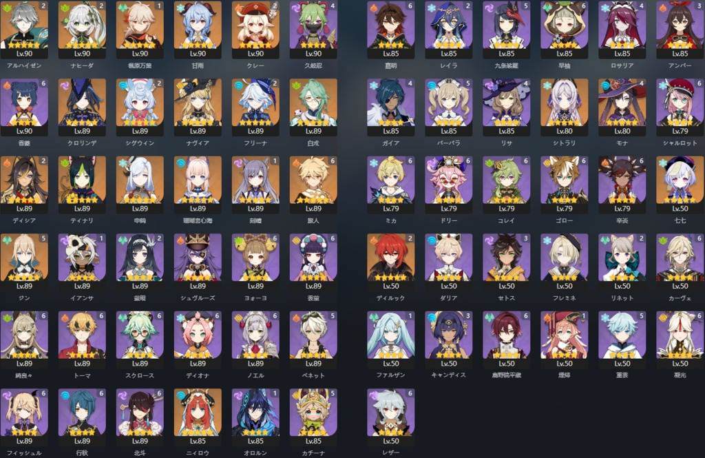 旅人 炎:マーヴィカ・アルレッキーノ・シュヴルーズ・ベネット・香菱 水:フリーナ 氷:スカーク・エスコフィエ・シトラリ・申鶴 雷:イアンサ 風:(なし) 岩:シロネン 草:キィニチ・エミリエ・ナヒーダ