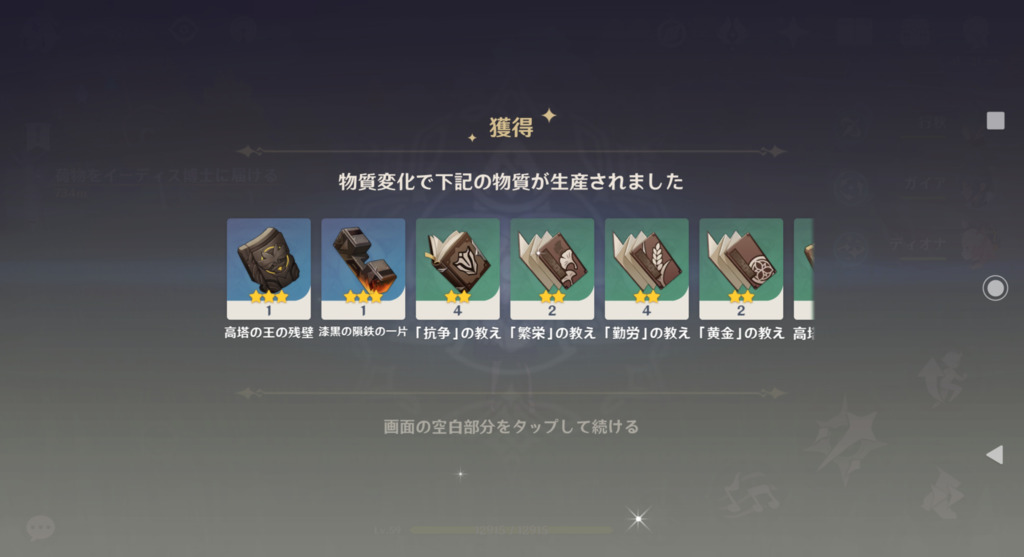 ・属性宝石、天賦本、武器突破は基準量分は恐らく全て★2