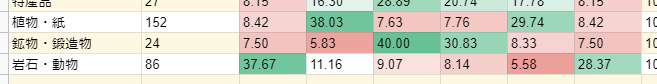 上の表見る限り動物系と鉱石系がサンプル数少ないかな?