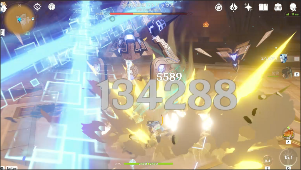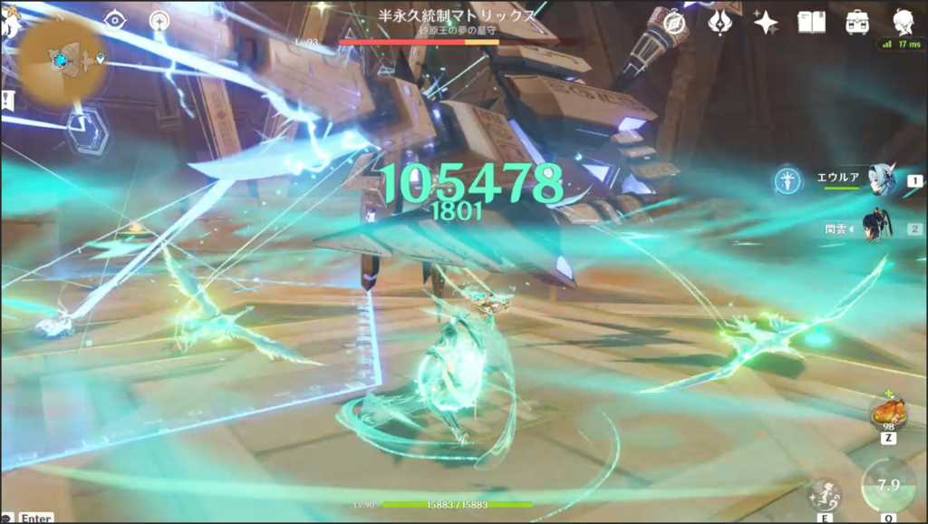 念のため画像もおくよ エウルア(バフ閑雲のみ) 閑雲 両方餅武器3凸キャラ完凸(エウルアは餅武器より標のがよかったんで標に)(閑雲は四風もあるけど餅武器のが最大打点高かったので餅に) 何度もいうけど閑雲は数値だけ見れば迫ってるけどスキル3回+落下攻撃打ってる間にエウルア2回落下攻撃うてるんで実際はえぐい差があるよ