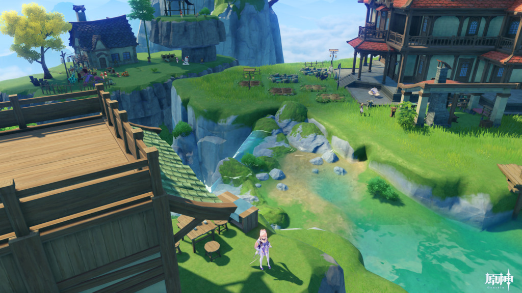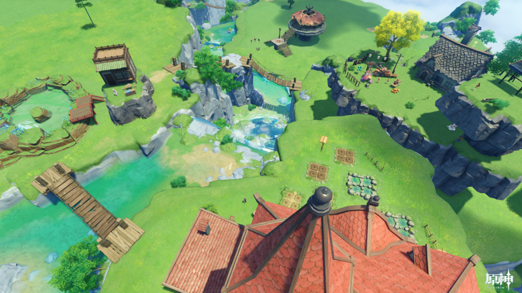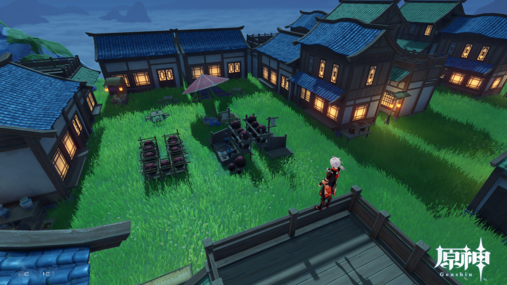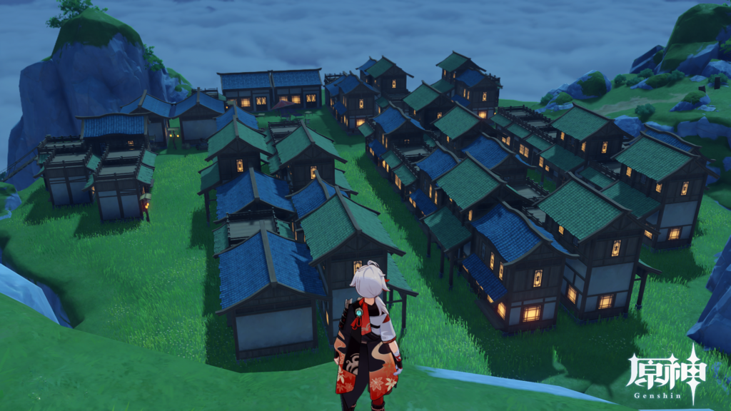 璃月スタイルの小さい家は屋根の高さが少しずつ違うので、綺麗に並べると奥行きが出てきて写真映えしますね。
