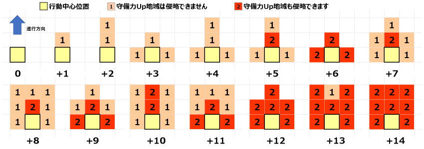 攻撃力UPされた領地の攻撃力は常に攻撃力+1されます。 - 守備力UP条件