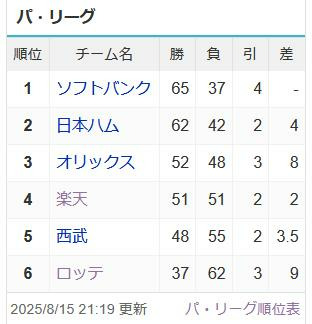 いや~ ダメかと思ったら勝っちゃった。オリックスも西武も負けてくれましたが5割の壁はなかなか厳しい。