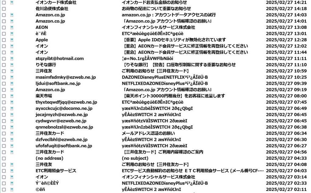 e-TAX やら持っていないのにエポスカード、VISAカード、トヨタのカード、イオンカード、JCBカード、後はヤマト運輸、佐川急便、何故かamazonのアカウント云々等々。
