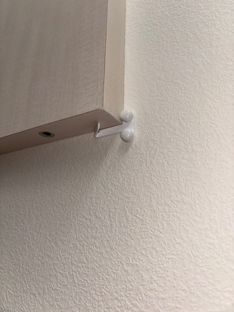 壁掛けでの強度は多少不安が残りますが、下側は吊り下げ金具を横にして、多少重みは支えられるようにしてみましたので、多分大丈夫でしょう。もし最悪落下してもパネルだけなら他に実害は無いような場所です。