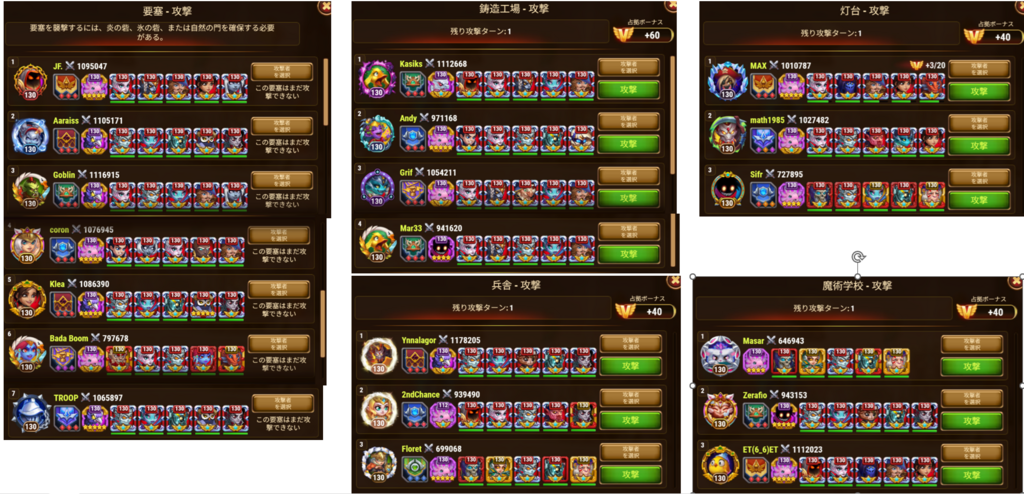 - ギルド戦に出たい、というやる気マンマンの方は、とにかく防衛拠点に登録されているヒーローとタイタンのパワーを上げてみてください。週末時点で20番目の人よりも上回れば次の週のレギュラーになれます。