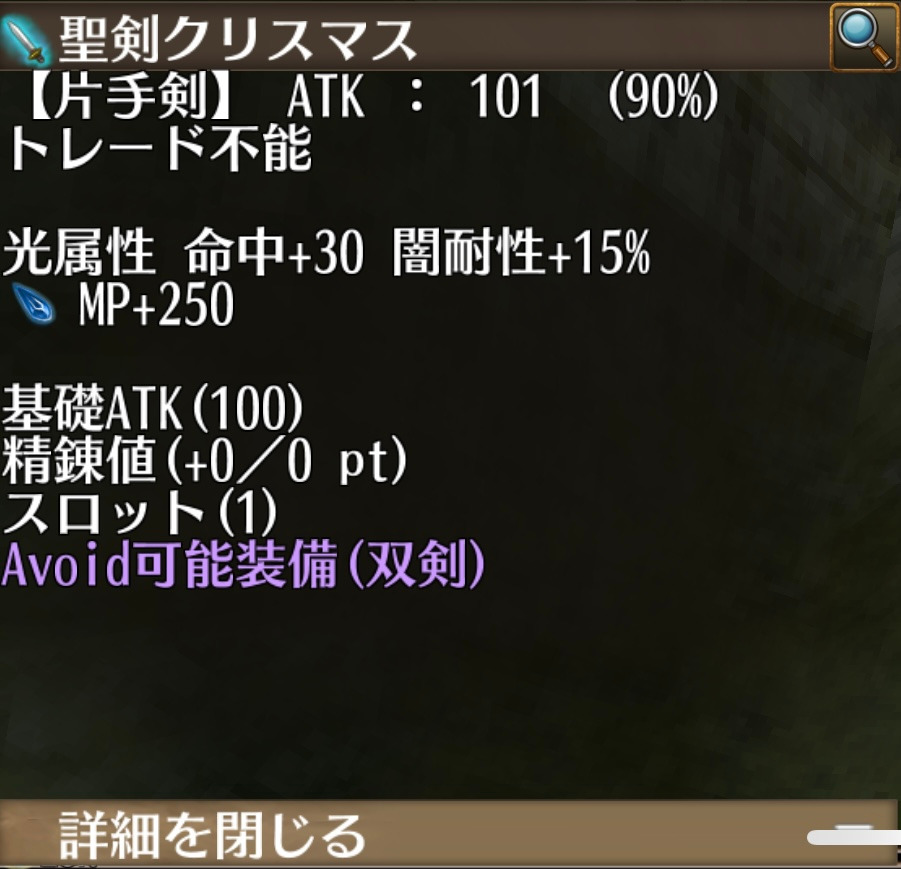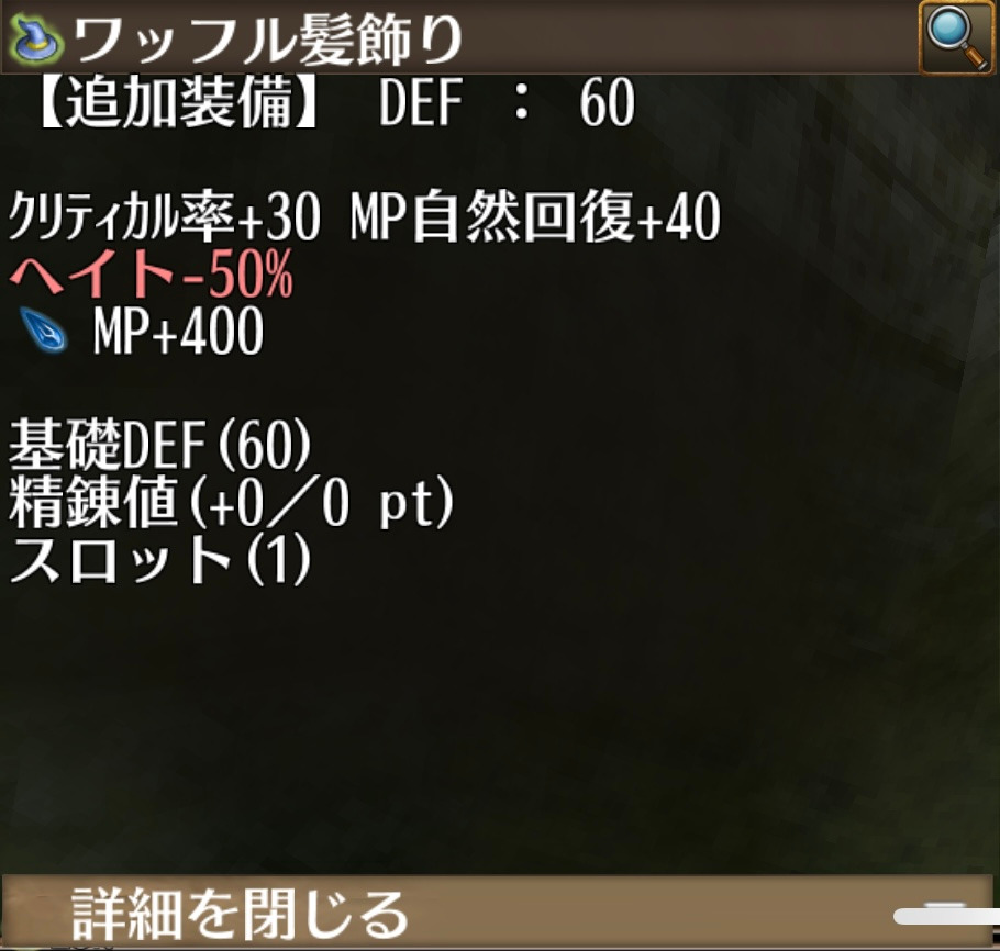 ※約20分間命中+12%、クリティカル率+6、安定率-3%。