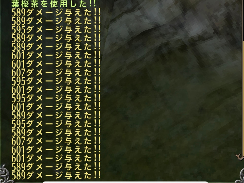 ※葉桜茶を使ってその効果中にラフィを200回通常攻撃すると200回クリティカルが発生。