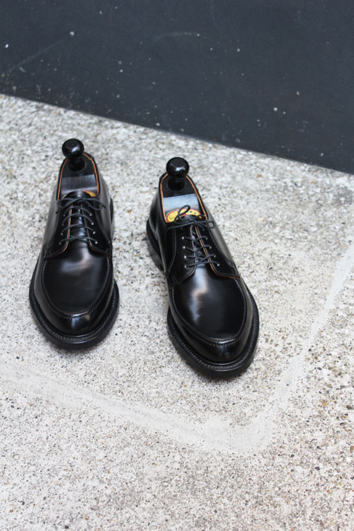 履き口周りをスエードでソフトに、そしてフロント部分にはILCEAのHORSE RADICAを使用。トゥは攻めるとすればスクエアもしくはチゼルトゥ、馴染みが深い0401番の様なラウンドトゥも良いですね(^u^)等妄想しております。