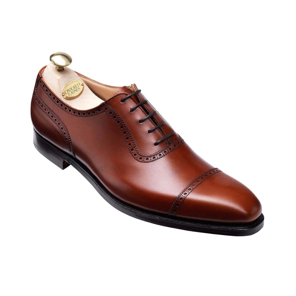 羽根部分と履き口周りに切り返しのない装飾ブローギングが施されている下記の靴も魅力的に思います。