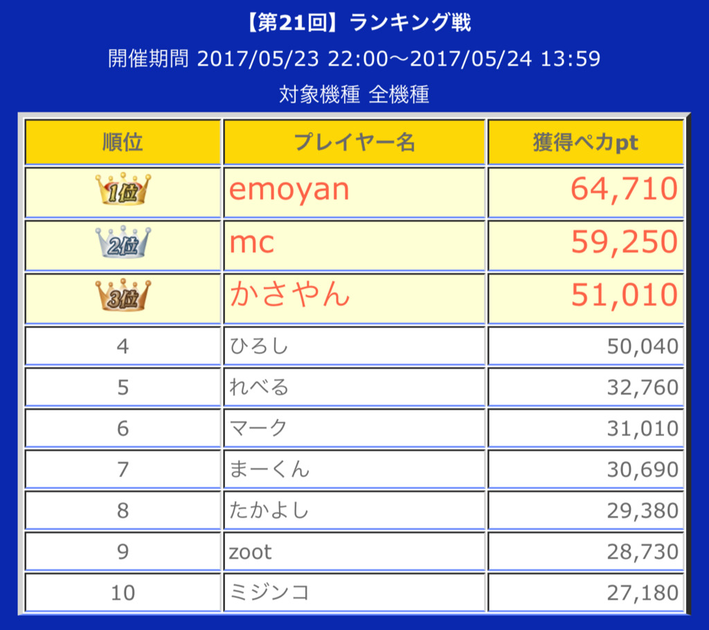 ランキング戦はさらに古く5月からランクインでしたか^^;; 失礼しました〜!^^; 初代メンバーですね。 リストを見た感じ、今のところミジンコさん以外のプレイヤーは見たことないかな〜
