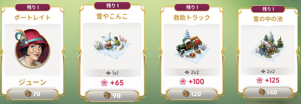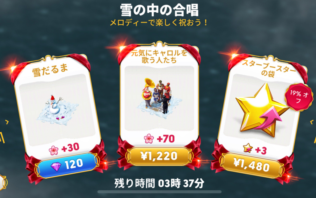 実はスクショを撮る前に雪だるまを購入してしまい、雪だるまの画像の上に{購入済}マークが付いてしまったのでやむを得ず画像をトリミングしてしまいました···😓💦