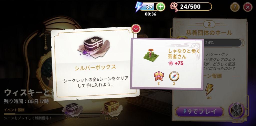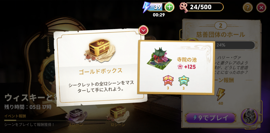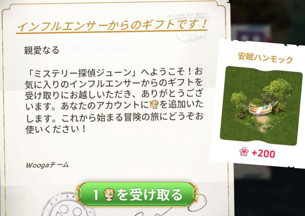 今年に入ってからゲームプレイ0回、前回の回顧録終了後は、たまにログインして建物コインを集めたり、こんな怠け者にもお花をくださるお友達にお返しにいったり…だったのですが、それも間遠くなり1週間か10日か2週間ぶりくらいに(日付の感覚なく不確か情報すみません😅)ログインしたら、ウェルカムバックギフト?の対象となっていました。