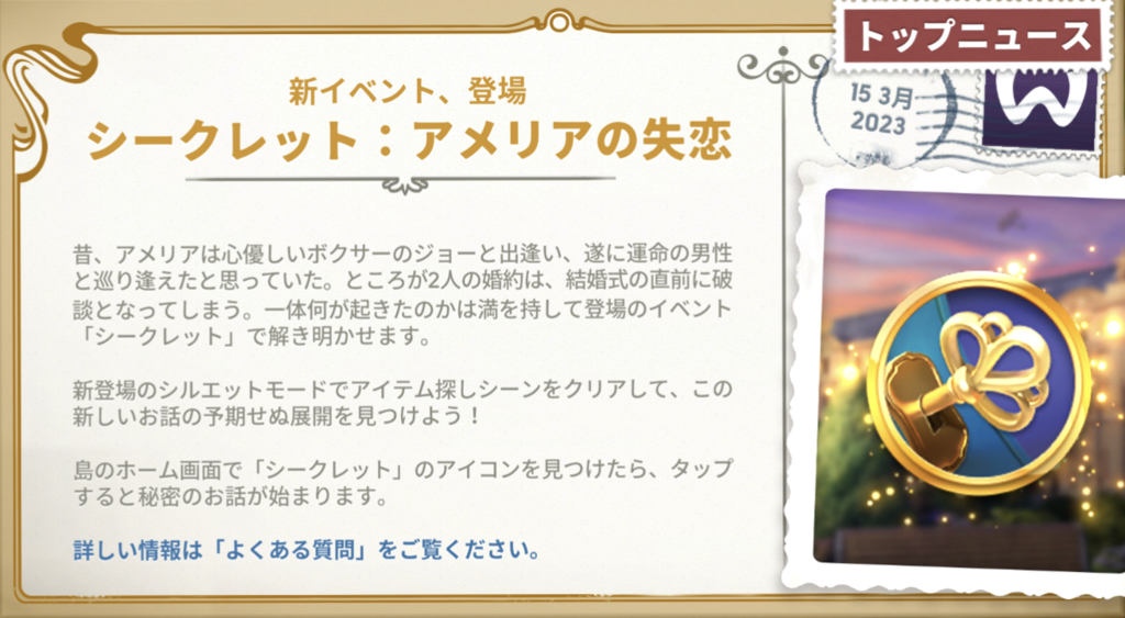 イベント・シークレット、アメリアの失われた愛は、まだまだ続きます!