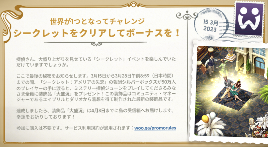 「クラブミステリーズ」という7日間のコラボイベントを、4/12までに契約したクラブを対象に、4/18(火)から早期アクセスで開始する予定です。