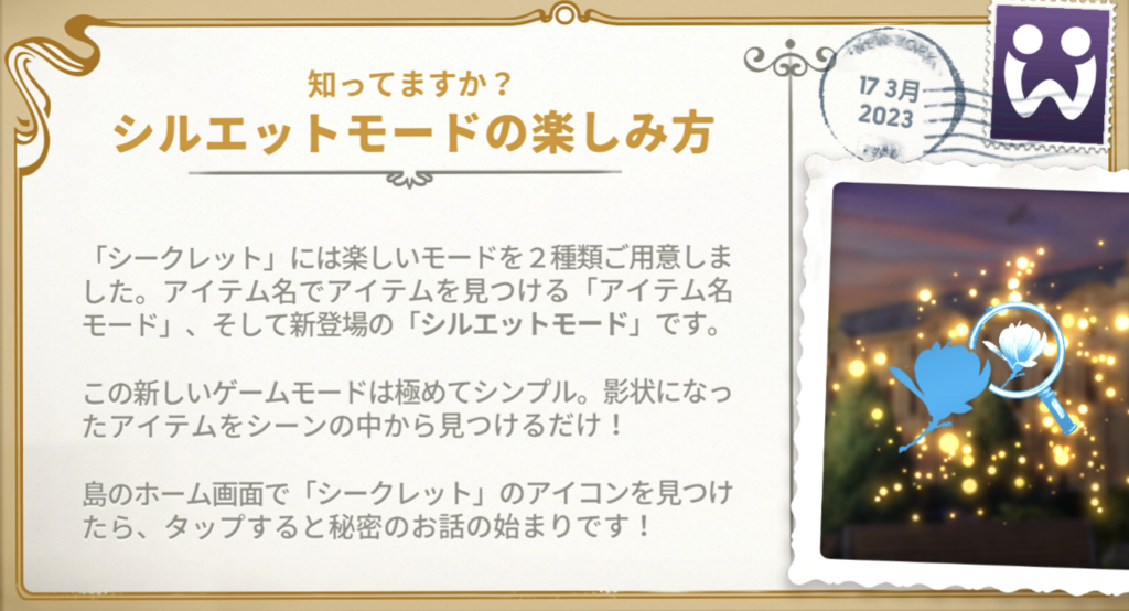今までの他のプレゼントと同じく、直接ゲームが開き、島のポスト📬に届きます。