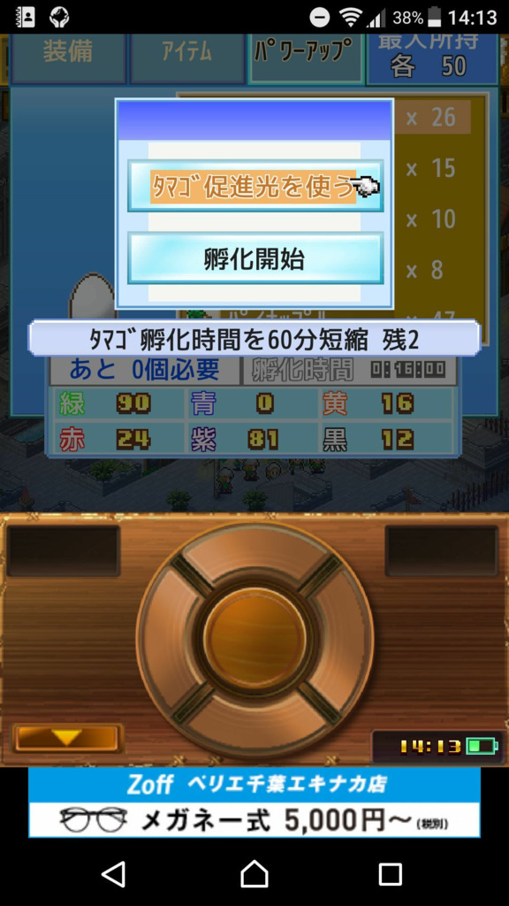 促進光を使って孵化時間を1分に短縮、土日の場合ボーナスでさらに12秒で孵化可能b(^^